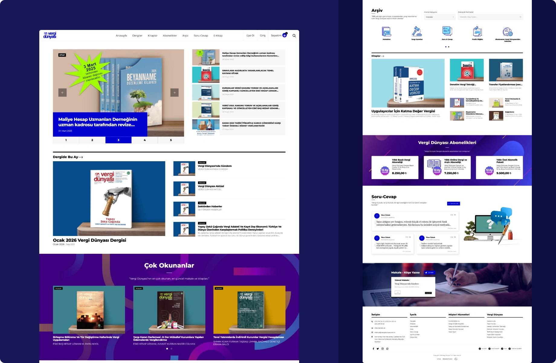 vergidunyasi.com.tr was designed and developed as the digital platform for Vergi Dünyası, one of Turkey’s most established and respected journals in the field of tax law, published by the Association of Financial Accounting Experts. The objective of the project was to transform a long-standing print publication into a comprehensive, accessible, and commercially viable digital experience.